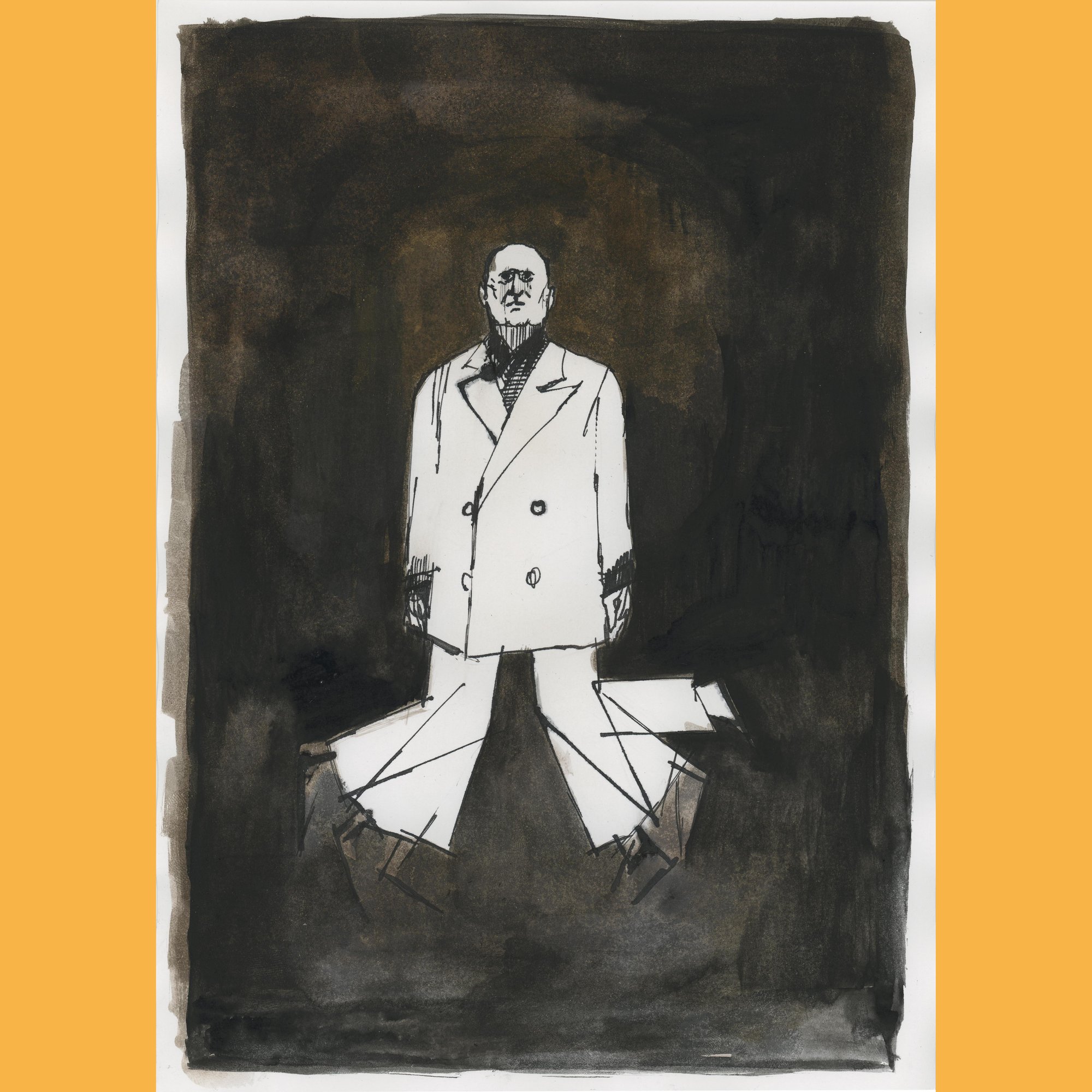 Dibujo para el libro historia abreviada de la literatura portátil, de Enrique Vila-Matas, ed. Libros del Zorro Rojo. Tinta y agua sobre papel, 21 x 29,5 cm.
